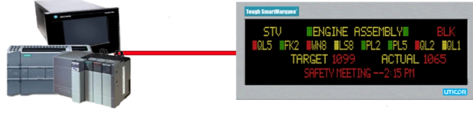 Uticor Tough Master Marquees connect to Allen Bradley, Modicon, Siemens, Mitsubishi, DH+,
